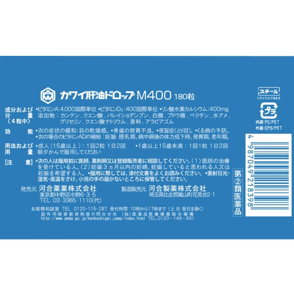 카와이 간유 드롭 M400 180알 카와이제약 > 종합 비타민제