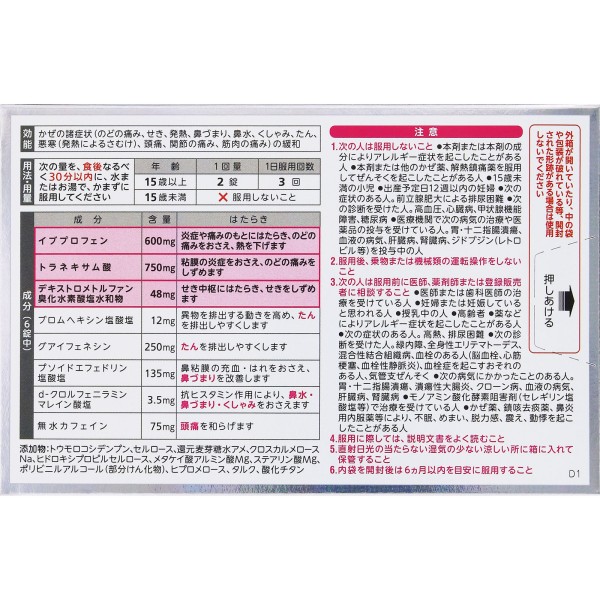 ·이부프로펜을 600mg(1일량) 배합하여, 목의 통증을 억제하고 열을 내립니다.