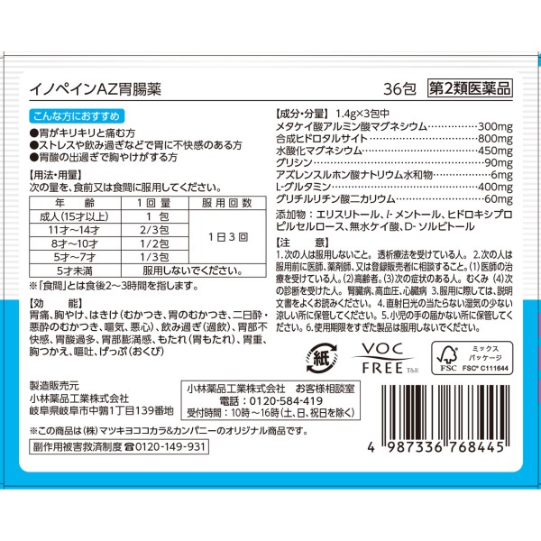 마츠키요 이노페인 AZ 위장약 36포 > 점막 보호