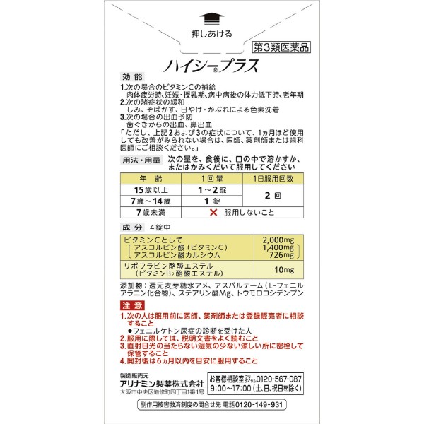 MK 하이씨 플러스 120정 아리나민제약 > 비타민C제