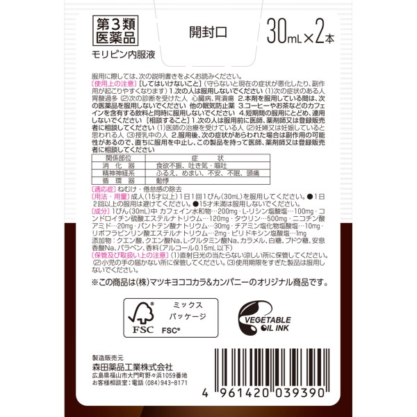 마츠키요 모리핀 내복액 30ml×2 > 졸음 방지제