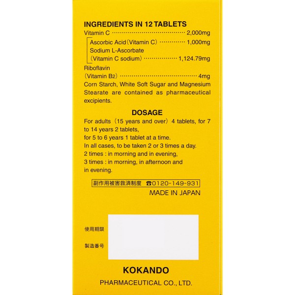 비타민 C정 2000 "쿠니키치" 320정 코칸도제약 > 비타민C제
