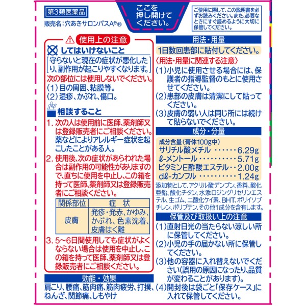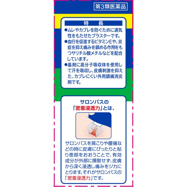 ○구멍 뚫린 살론파스 Ae는, 무더움이나 짓무름을 방지하기 위해 통기성을 갖춘 플라스터입니다.