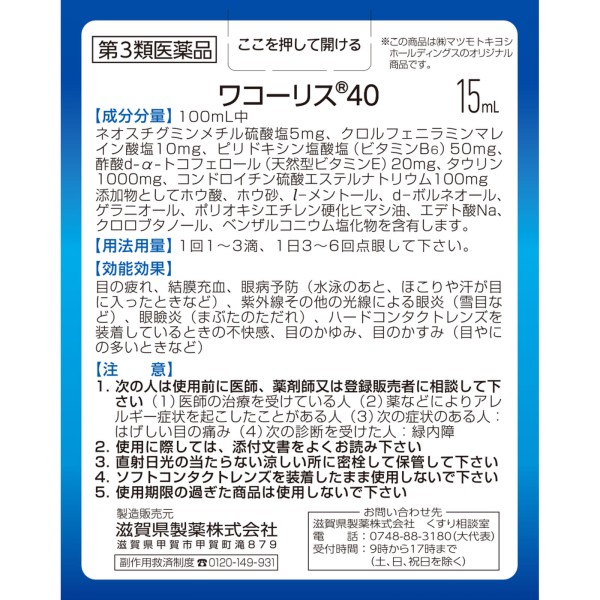 마츠키요 와코리스 40 15ML > 눈 침침함