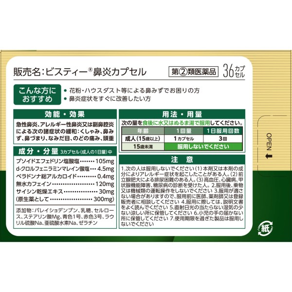 마츠키요 비스티 비염 캡슐 L 36캡슐 > 비염약 (1일 3회)
