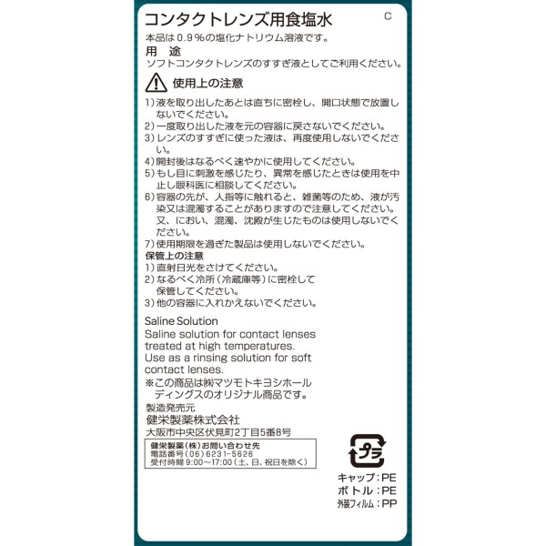 마츠키요 콘택트렌즈용 식염수 510ml > 보존·헹굼액