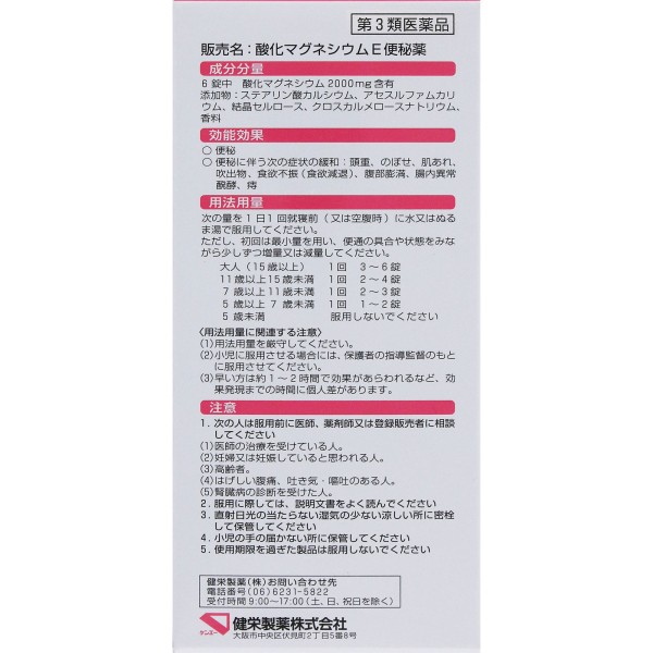 산화마그네슘E변비약 400정 켄에이제약 > 화학 제제