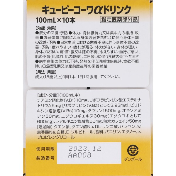 큐피코와알파드링크 100mL×10 코와 > 부외품