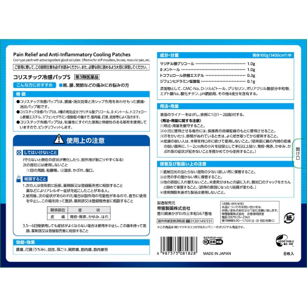 matsukiyo 코리스틱 냉감팝S 8매 > 습포(냉감)