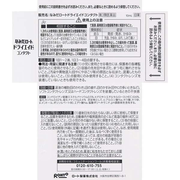 로트드라이에이드콘택트a 10ml 로토제약 > 콘택트렌즈용