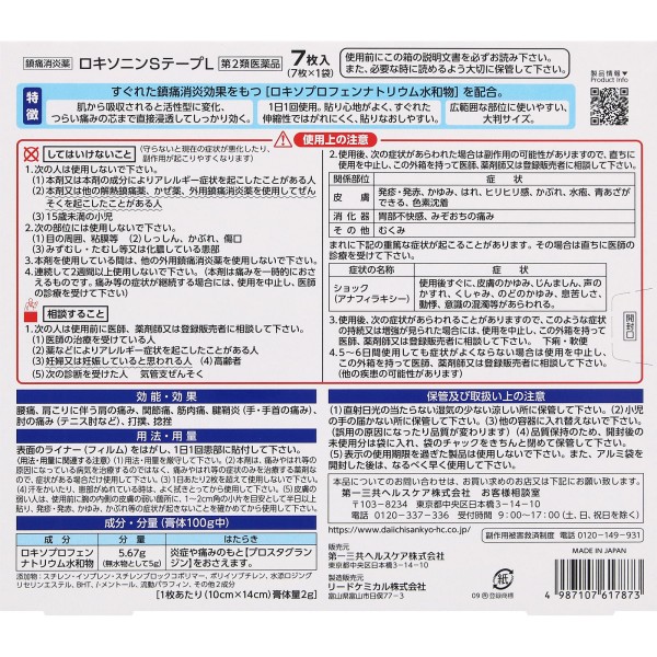록소닌S테이프L 7매 다이이치산쿄 헬스케어 > 플라스타 (냉감)