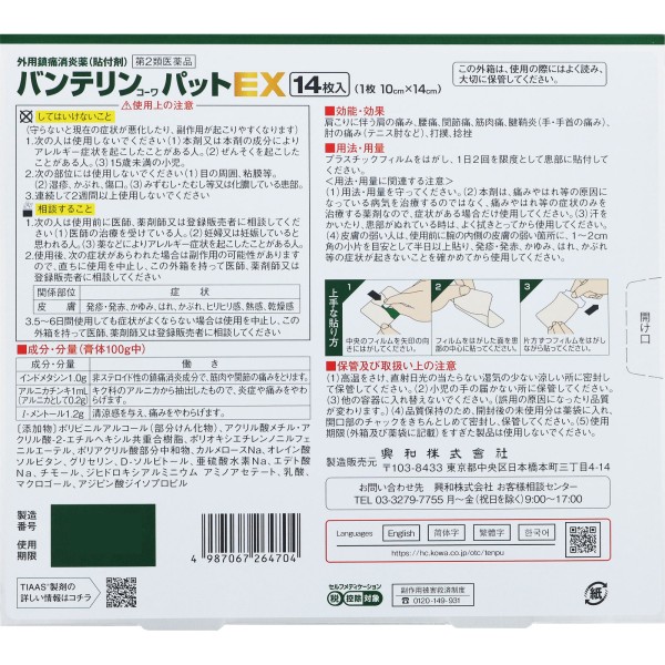 반테린코와팟EX 대판 14매 코와 > 플라스타 (냉감)