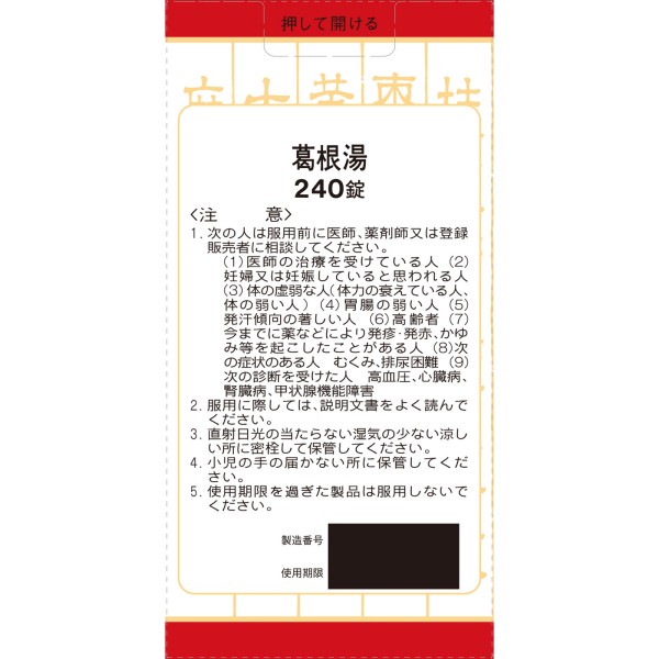 ○'갈근탕'은, 한방의 고전이라 불리는 중국의 의서 '상한론' '금궤요략'에 수재되어 있는 약방입니다. 감기나 어깨 결림 등에 효과가 있습니다.