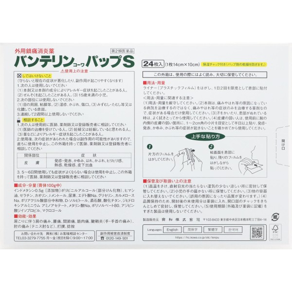 반테린코와팝S 24매 코와 > 습포(냉감)