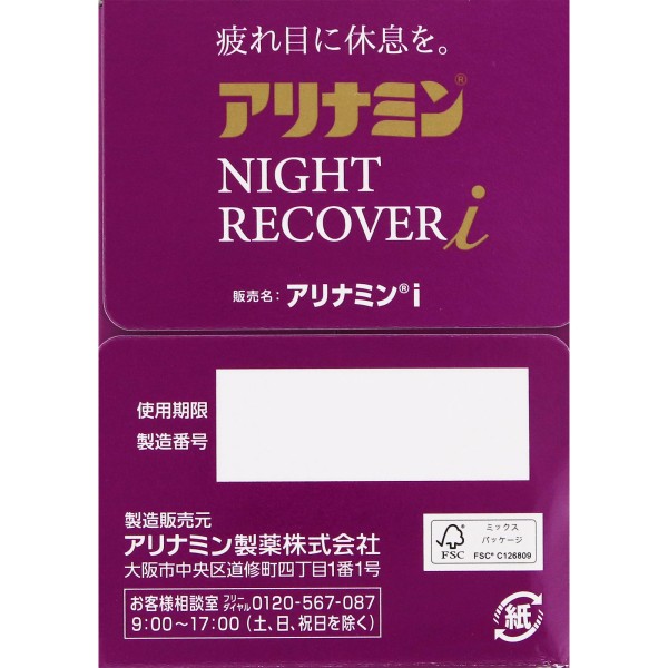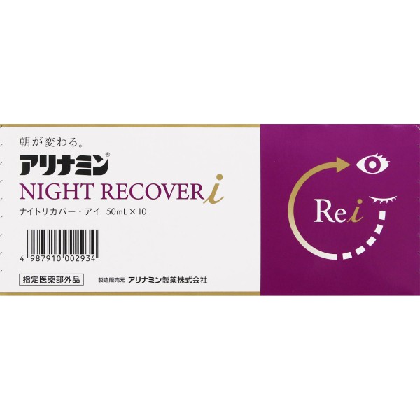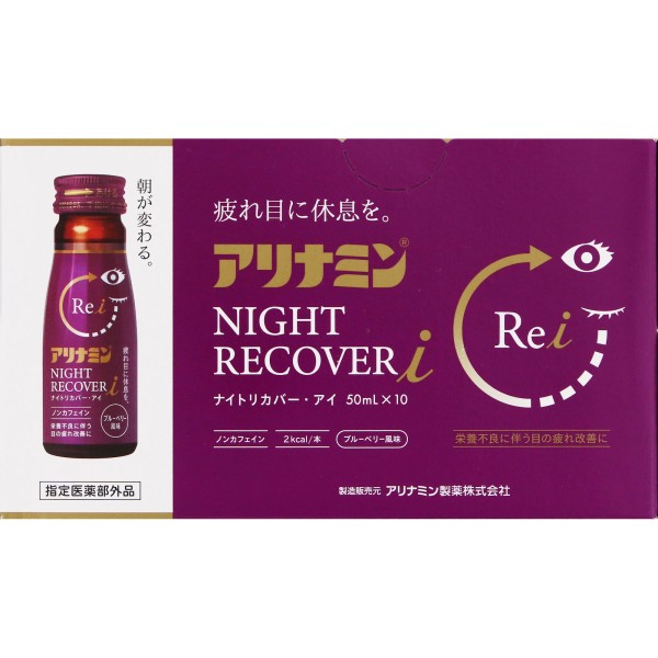 아리나민 나이트 리커버 시리즈로 아침이 변한다! 아리나민 나이트 리커버 i, 눈의 피로에의 효과를 더 의식한 처방. 눈에 관여하는 생약 구기자 등 8가지 유효 성분을 배합. 1개 2kcal의 저칼로리, 마시기 쉬운 블루베리 풍미.