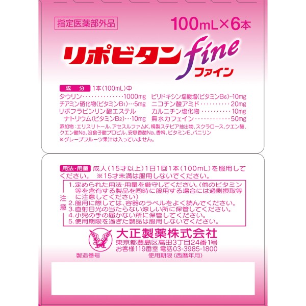 리포비탄파인 100mL×6본 다이쇼제약 > 부외품
