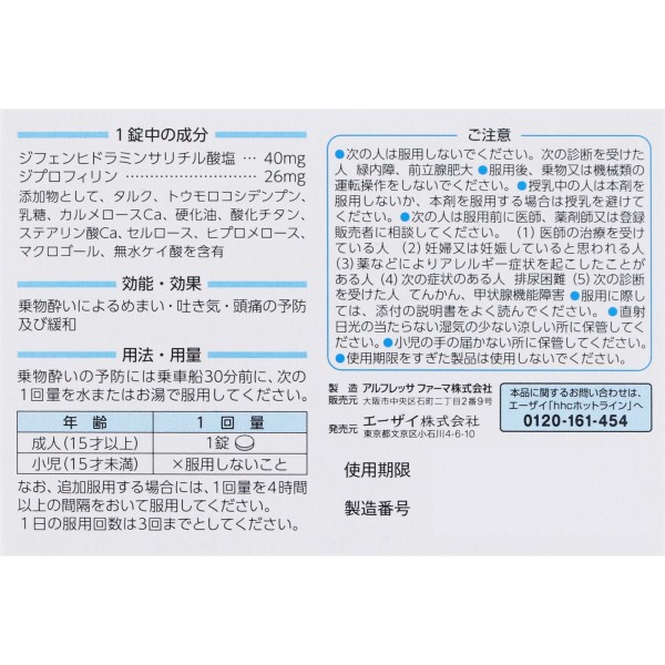 탈것 멀미 증상의 예방 및 완화에 유효한, 어른용 멀미약입니다.