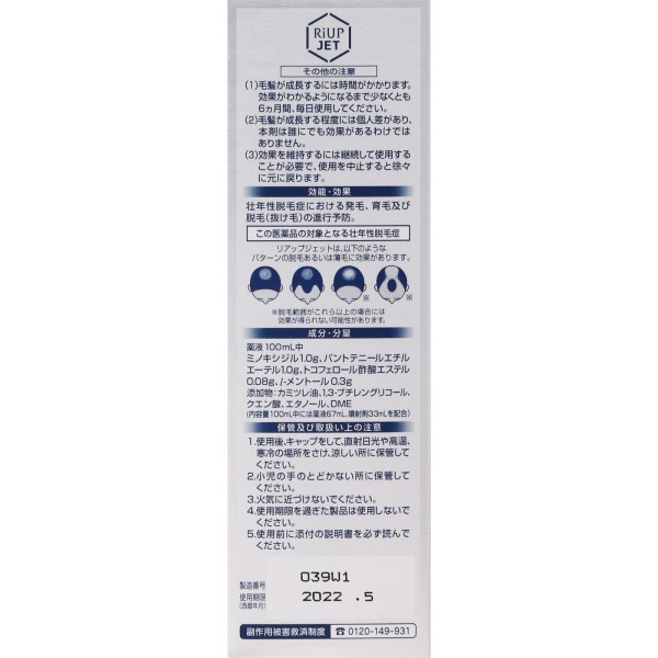 ◆리아프 제트는, 발모 성분 미녹시딜을 배합한 기분 좋은 사용감의 제트 분사식 에어로졸입니다.