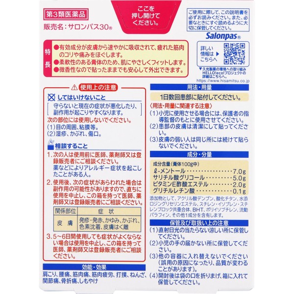 살롱파스30 60매 히사미츠제약