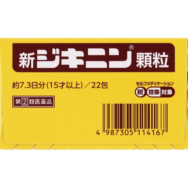 신지키닌 과립은, 진해제 디히드로코데인인산염이나 해열진통제 아세트아미노펜, 진해·거담 작용이 있는 생약 감초 엑기스 등의 작용으로, 감기에 동반되는 기침, 발열, 두통 등의 증상에 잘 효과가 있는, 12세부터 어른까지 복용 가능한 감기약입니다.