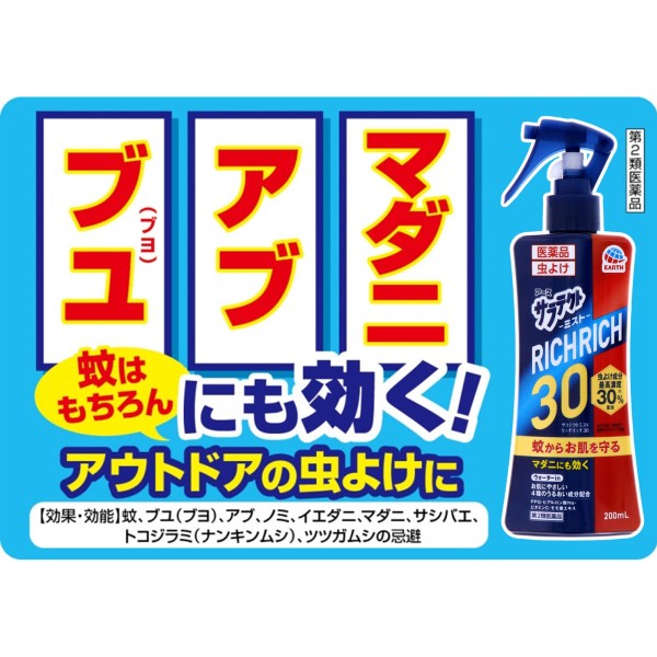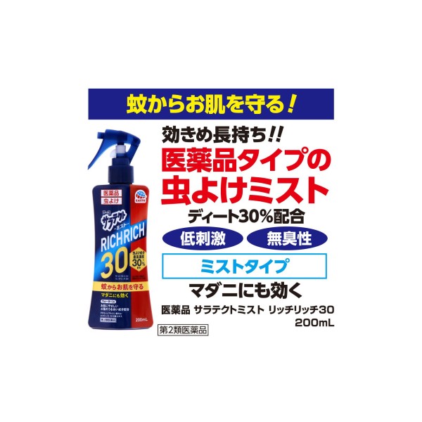 살라텍트 미스트 리치리치30 방충 스프레이 아웃도어 캠프 외출용 모기 대책 200ml 아스제약 > 가스 스프레이