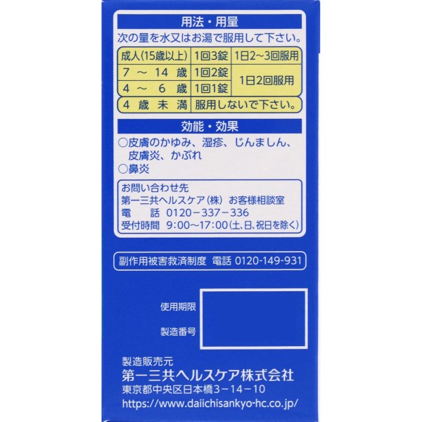 알레르기르정 110정 다이이치산쿄 > 내복약 (가려움)
