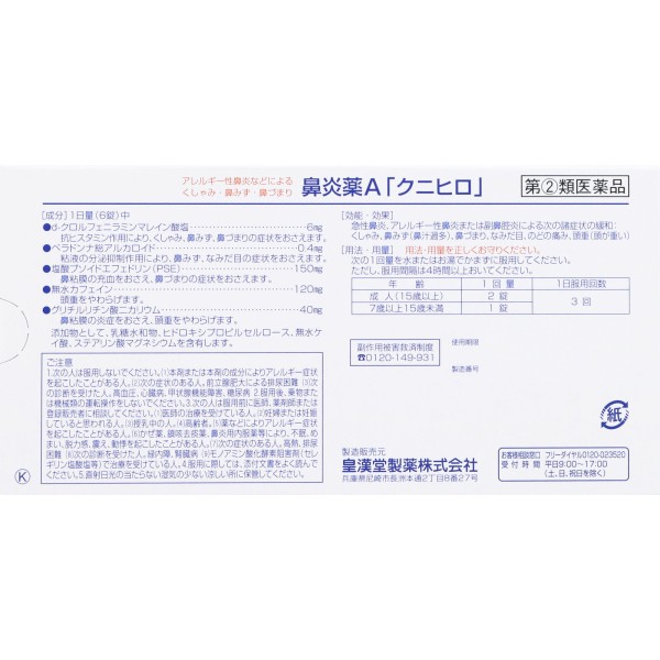 비염약A「쿠니히로」 48정 코칸도제약 > 비염약 (1일 3회)