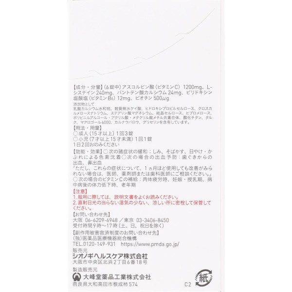 시나르L 화이트엑시아 180정 시오노기헬스케어 > 비타민C제