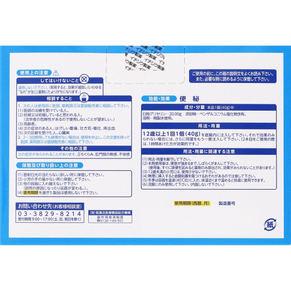 더 효과가 있었으면 하는 변비에, OTC 의약품에서의 최대 용량 40g의 이치지쿠 관장 40 시리즈의 최대 개수의 20개입입니다.