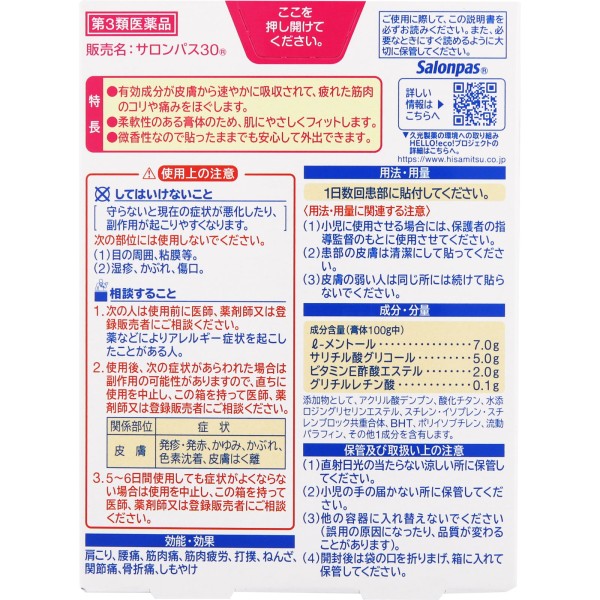 살롱파스30 40매 히사미츠제약 > 플라스타 (냉감)