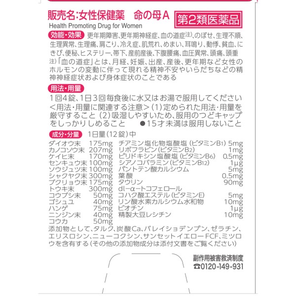 여성보건약 이노치노하하A 252정 고바야시제약 > 부인약