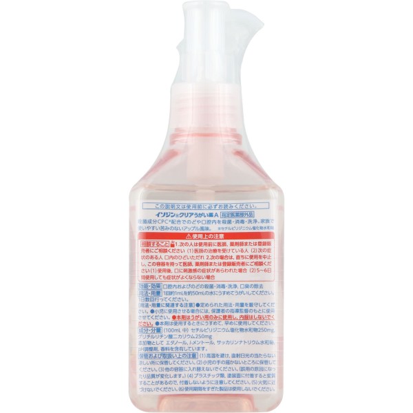 ●유효 성분 CPC(세틸피리디늄염화물수화물), 글리시르리진산이칼륨 배합으로, 목이나 구강 내를 살균·소독·세정, 구취 제거.