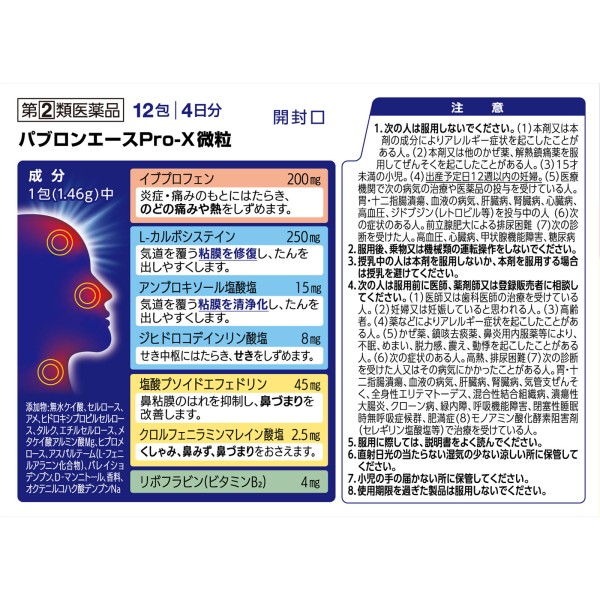 파브론 에이스Pro-X 미립 12포 다이쇼제약 > 발열·인후에 효과적인 약