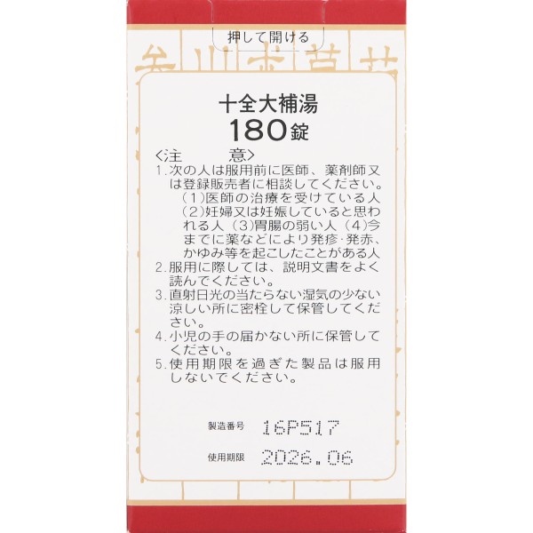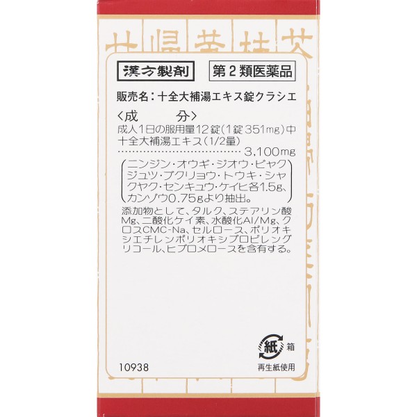 ○'십전대보탕'은, 한방의 고전이라 불리는 중국의 의서 '화제국방' 제병문에 수재되어 있는 약방입니다. 체력의 저하를 크게 보충한다는 의미로 이름 붙여져 있습니다.