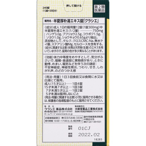 반하후박탕 엑기스정 240정 크라시에 > 한방약(크라시에)