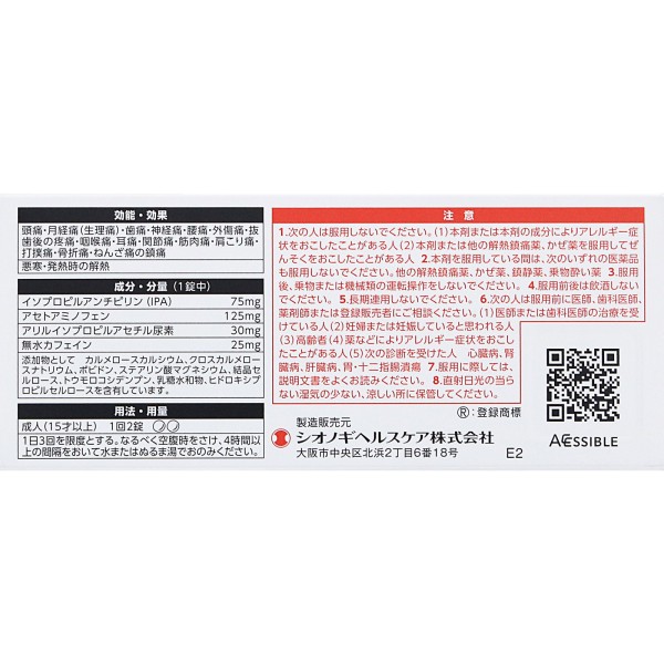 ●진통 작용이 강한 이소프로필안티피린을 비롯한 4종류의 성분을 배합하여, 강한 통증에도 뛰어난 진통 효과를 나타냅니다.