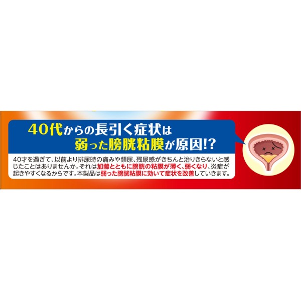 ●40대부터의 오래 지속되는, 방광 등의 염증에 의한 배뇨통, 잔뇨감을 개선하는 의약품입니다.