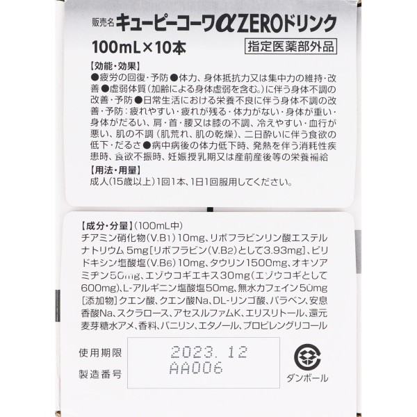 큐피코와알파ZERO 드링크 100mL×10 코와 > 부외품
