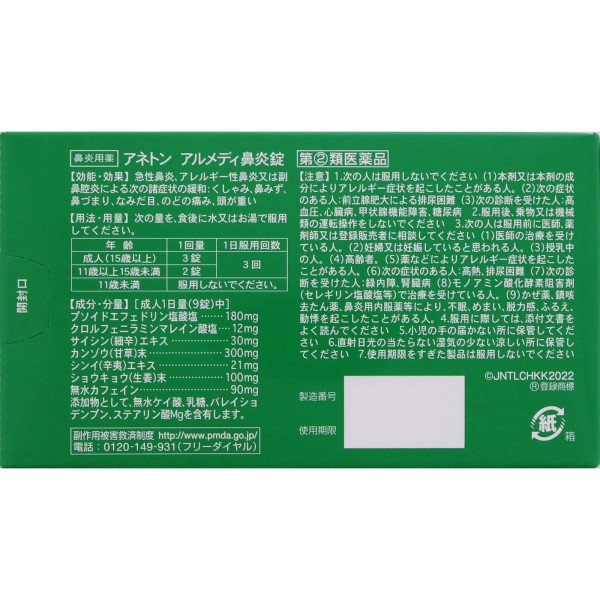 아네톤 알메디 비염정 90정 아리나민제약 > 비염약 (1일 3회)