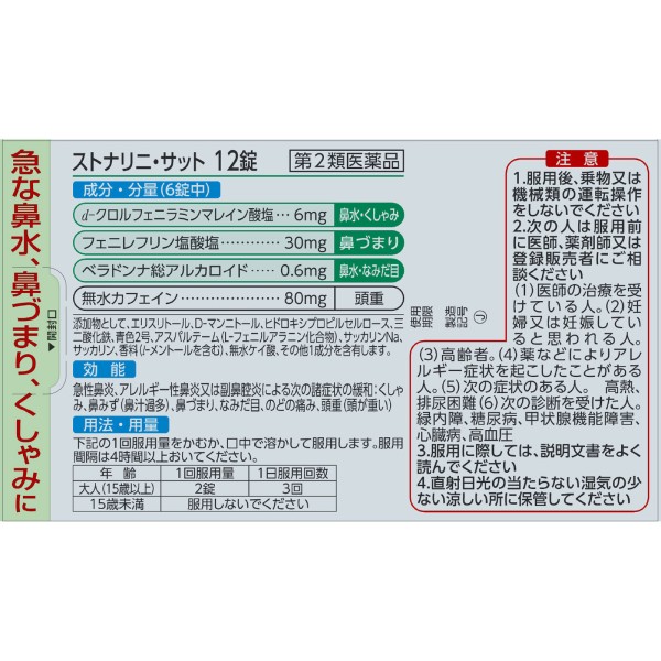 스토나리니·삿트 12정 사토제약 > 비염약 (츄어블)