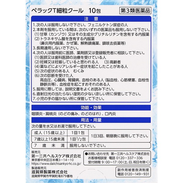 페락T세립쿨 10포 다이이치산쿄 헬스케어 > 트로키·사탕·기타