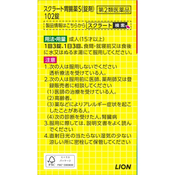 스크라토위장약S(정제) 102정 라이온 > 제산제