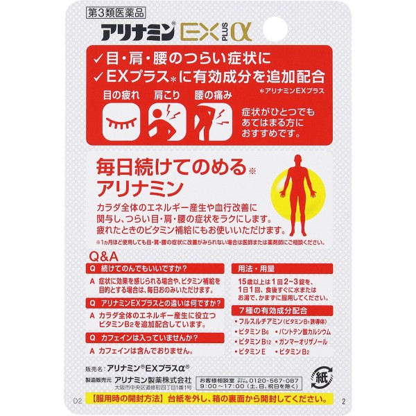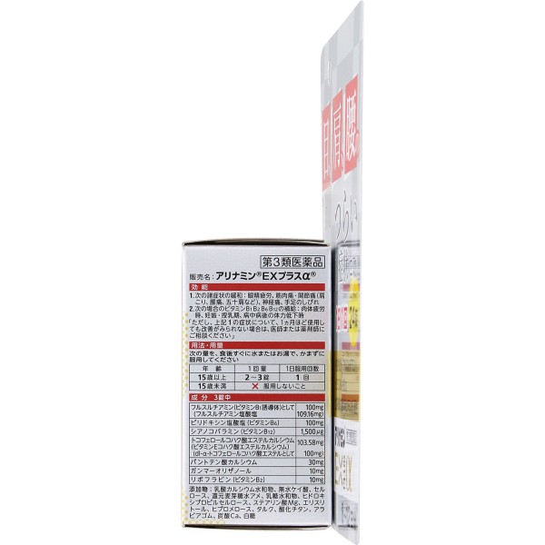 ●풀술티아민(비타민 B1 유도체)과 피리독신염산염(비타민 B6), 시아노코발라민(비타민 B12) 등을 배합하여, '눈의 피로' '어깨 결림' '허리 통증' 등의 괴로운 증상에 뛰어난 효과를 나타냅니다.
