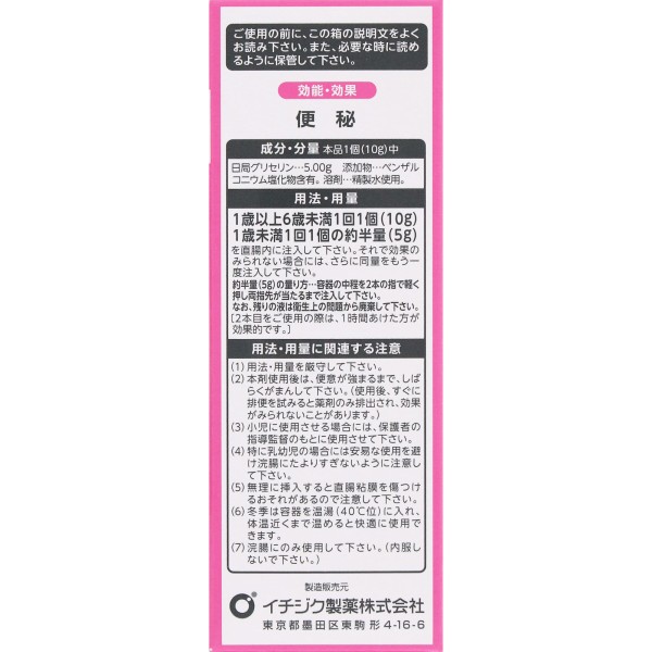 이치지쿠관장10 10g×4개입 이치지쿠제약 > 관장