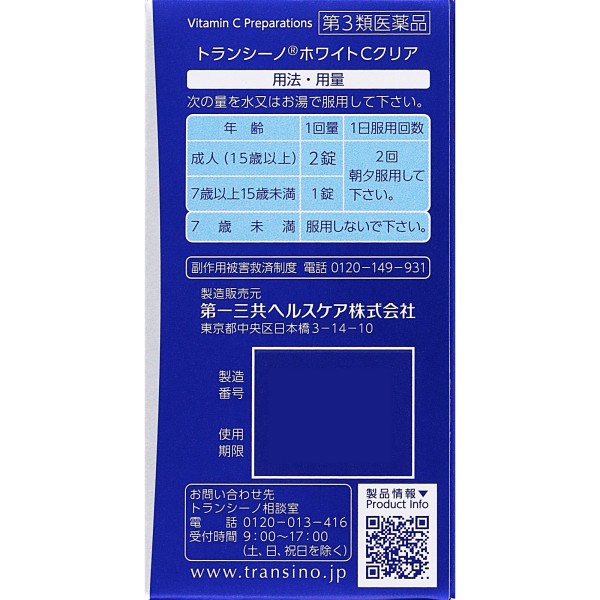 트란시노화이트C클리어 120정 다이이치산쿄 헬스케어 > 시스테인 제제