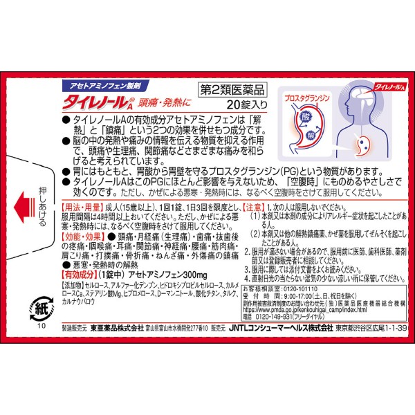 ●타이레놀 A의 유효 성분 아세트아미노펜은 '해열'과 '진통'이라는 2가지 효과를 겸비한 성분입니다.