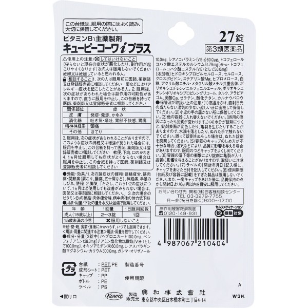 큐피코와i플러스 27정 코와 > 비타민B1 주제