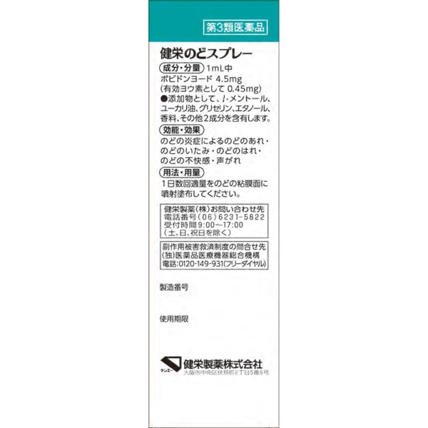 유효 성분 포비돈요오드를 2개의 분사구에서 목의 환부의 넓은 범위에 직접 분사합니다.