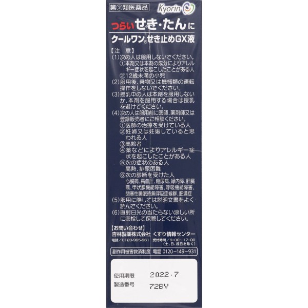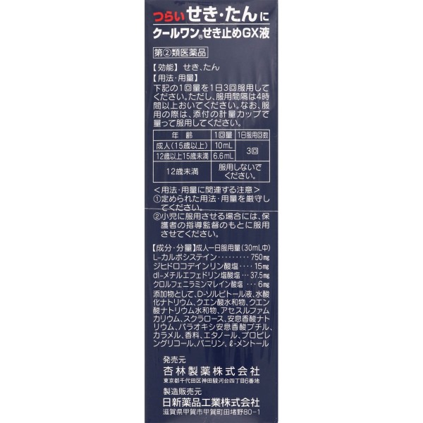 쿨원 기침약GX액 120ml 쿄린제약 > 액제