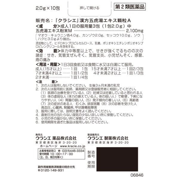 ○'오호탕'은, 한방의 고전이라 불리는 중국의 의서 '만병회춘'에 수재되어 있는 기침멈춤 약방입니다.